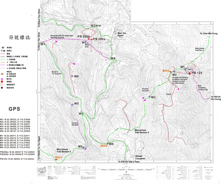 - 以同樣方式處理衛奕信徑沿線由西至東的以下四個位於郊野公園通道旁的槍堡:PB313、 PB126、PB123 、PB120;